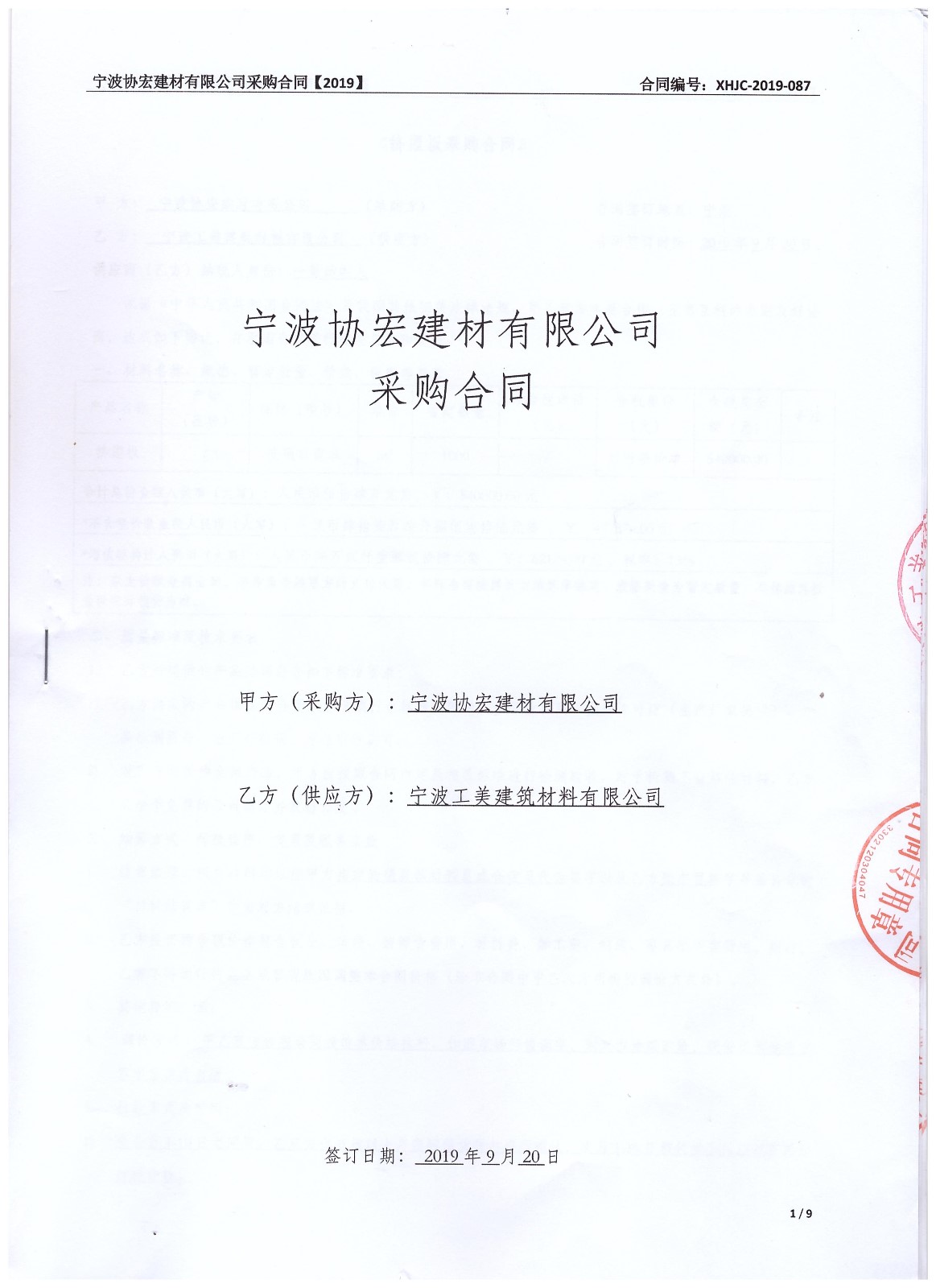 【寧波工美建筑材料有限公司】與寧波協(xié)宏建材有限公司簽約的戰(zhàn)略合作合同,其中包括巖棉板和擠塑板的供應,我公司將保質保量完成材料的供應。 (附:圖片和合同)